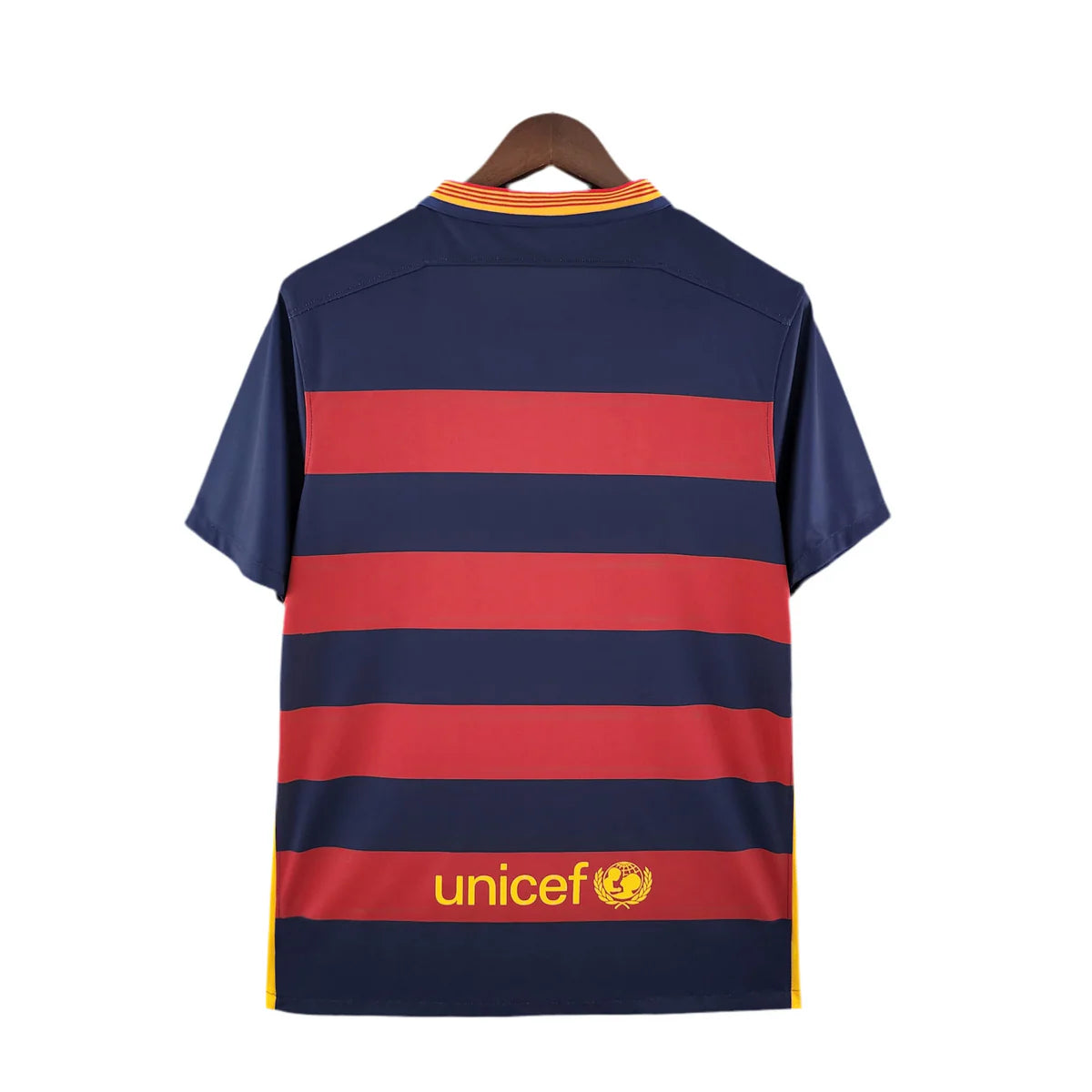 A Camisa Barcelona Retrô 15/16 revive o design clássico da temporada histórica do clube catalão. Com as tradicionais listras azul e grená, este manto é perfeito para torcedores nostálgicos, colecionadores e fãs que querem vestir a história de um dos maiores clubes do mundo.