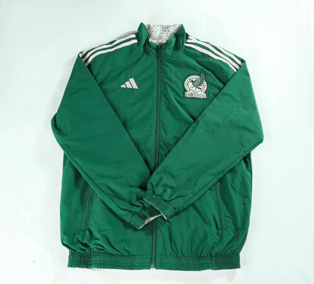 O Corta Vento México 24/25 – Dupla Face combina identidade, cultura e performance em uma peça versátil. Com design exclusivo que celebra as cores e símbolos da seleção mexicana, ele pode ser usado dos dois lados, oferecendo estilo duplo para torcedores apaixonados.